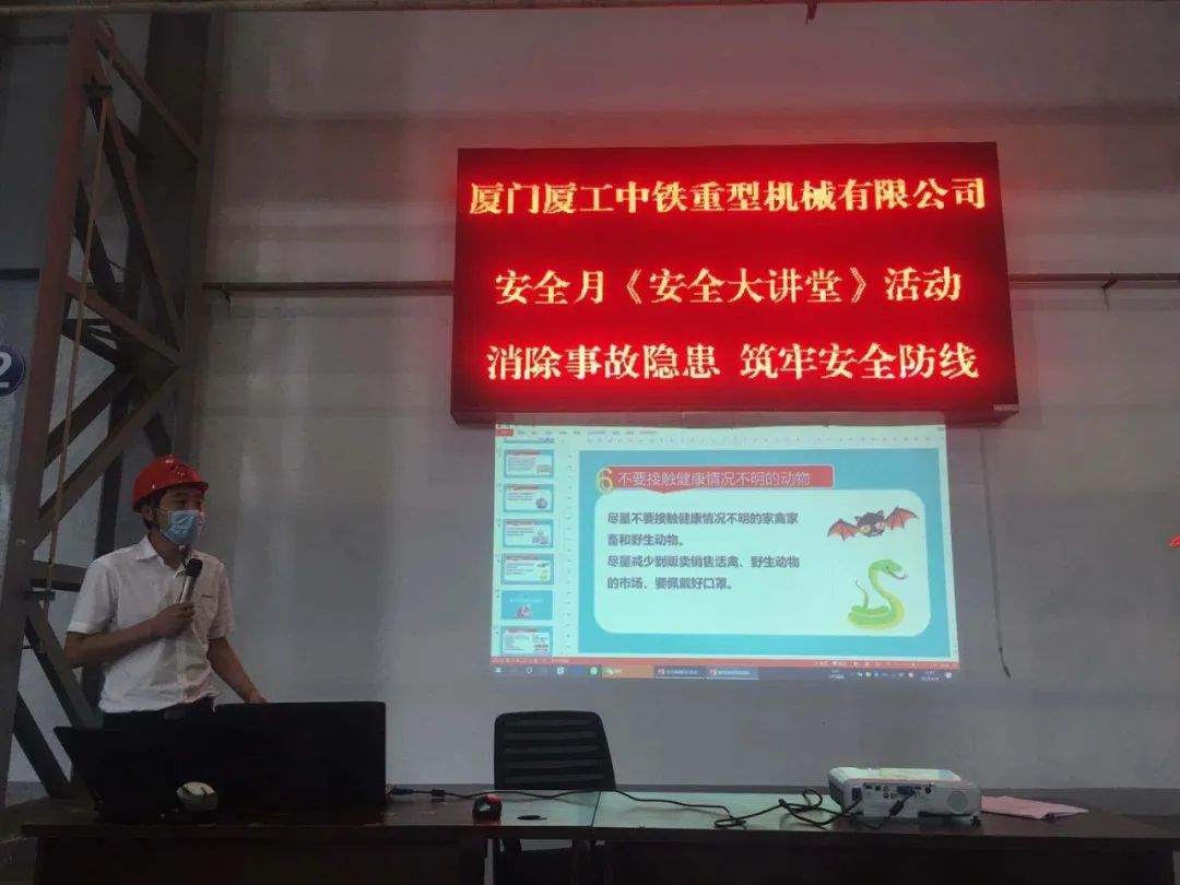 6月4日,根據(jù)公司安全生產(chǎn)月活動部署,廈工中鐵在生產(chǎn)車間舉行了以“消除事故隱患、筑牢安全防線”為主題的“安全生產(chǎn)大講堂”宣講活動,一線生產(chǎn)及后勤管理人員共40余人參加。此次宣講活動圍繞安全生產(chǎn)與事故典型案例,并結(jié)合《新型冠狀病毒預(yù)防知識手冊》與《安全基礎(chǔ)知識培訓(xùn)》等知識內(nèi)容展開。
